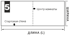 7.3.1 Выберите стену, от которой вы начнете монтаж. Разметьте центр комнаты.